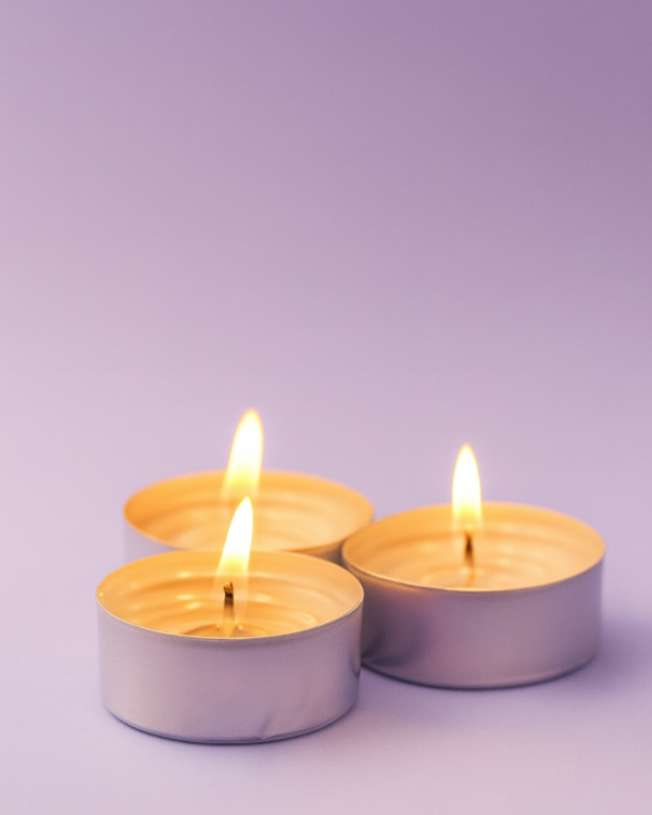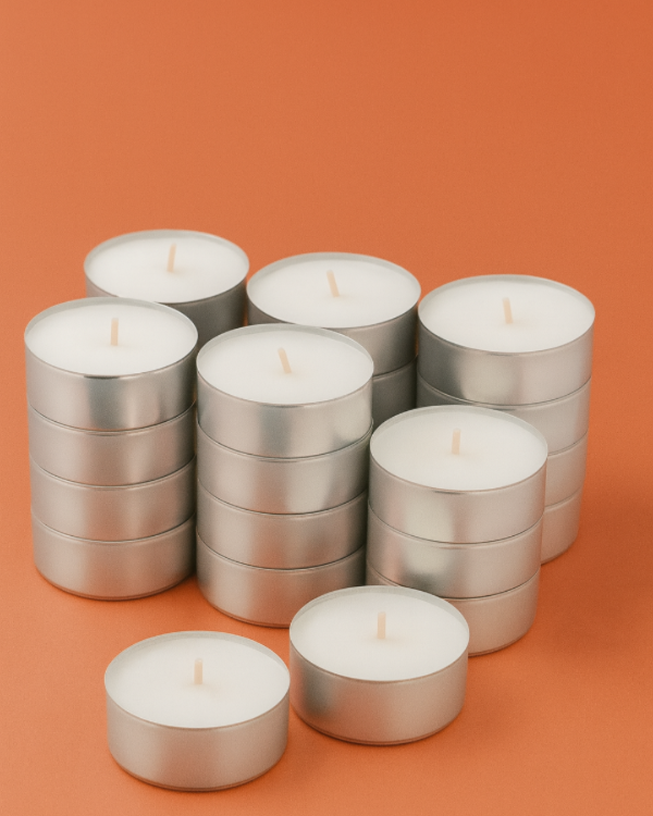 Nuestras velitas tipo tealight están hechas con 100 % cera de soja pura, libre de parafinas, químicos o derivados del petróleo.